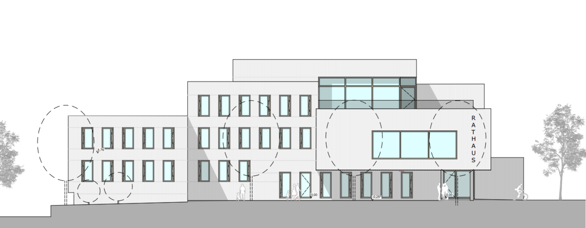 Um ein funktionales, modernes und einladendes Rathaus für alle Bürgerinnen und Bürger zu schaffen, wurden im November 2025 umfassende Sanierungsarbeiten am Bestandsgebäude gestartet. Das 1974 errichtete Rathaus, das 1998 um einen neuen Zugangsbereich erweitert wurde, wird aufgrund seines baulichen Zustands nun energetisch saniert und umgebaut. Die gesamte Gebäudehülle wird mit neuen Fenstern, einer verbesserten Dämmung und einer gestalterischen Aufwertung erneuert.